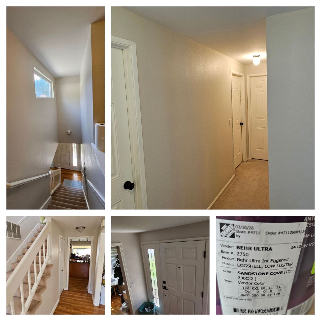 2014년 집을 사서 이사온 이후, 유일하게 Original paint로 남겨두었던 1층 문입구, 계단, 그리고 2층 마루… 사실 계단 천장에 닫는 높은 부분을 DIY로 칠할 방법이 없어 고민만하다가 집의 일부분만 너무 낡아보이는 느낌이 있어서 extension pole에 붓이랑 롤러를 끼운후….계단에 사다리 설치하고 오르락 내리락, 사다리를 비스듬히 눕혀놓고 서커스 줄타기하듯이 왔다갔다하며 결국 clear했다…