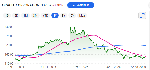 그래도 나름 아주 쪼끔 들고 있던 오라클 주식… 지난 1년간 거의 롤러코스터 한판 태워주셨다. 특히 최근 몇 개월이 아주 드라마틱한데… AI로 인해 투자한 금액이 걱정된다는 시선/frame의 하방압력을 받고 하루 건너 반복적으로 두드려 맞는 형국인데… 개인적으로 보기에는 이건 이제 선 좀 넘어간듯하다.. (물론 마소 다닐 때도 느꼈지만 미장도 이런 “카더라”류의 감정적인 대응을 하는구만…ㅎㅎ)