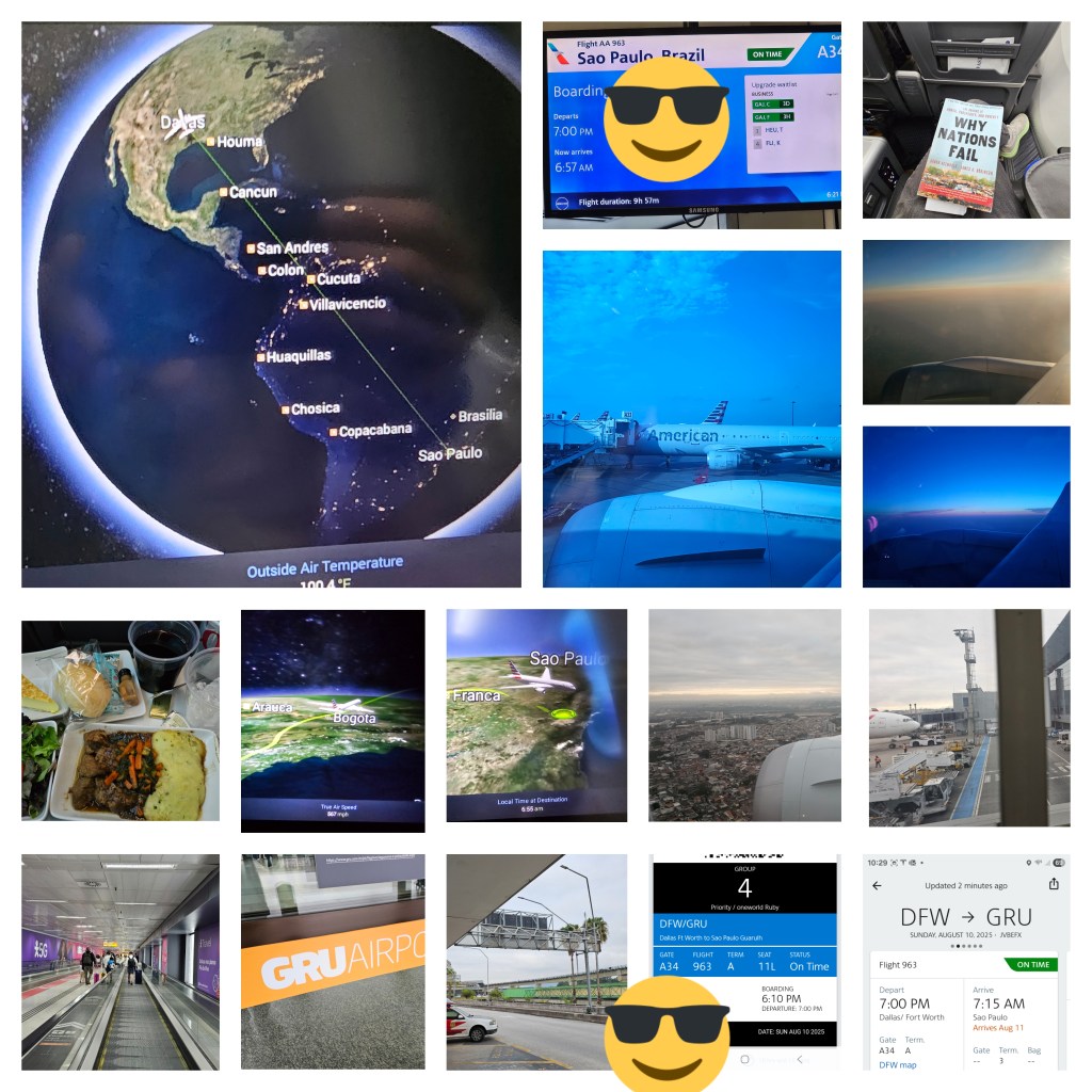 암튼 몇시간의 숙면과 영화 한편 (Accountant 2 보다가 잠들긴했음) 책좀 읽어주다가 밥먹고 쓰러져 자고 일어나니 남미 비행기는 남미에 진입하고 더 졸다보니 어느새 어마어마한 대도시인 Sao Paulo GRU에 내렸다. (공항은 마치 인천공항 전의 김포공항을 보는듯한…. 크진 않지만 엄청 사람많고 복잡…-말도 안들리는데 정신 제대로 털려주셨다..)