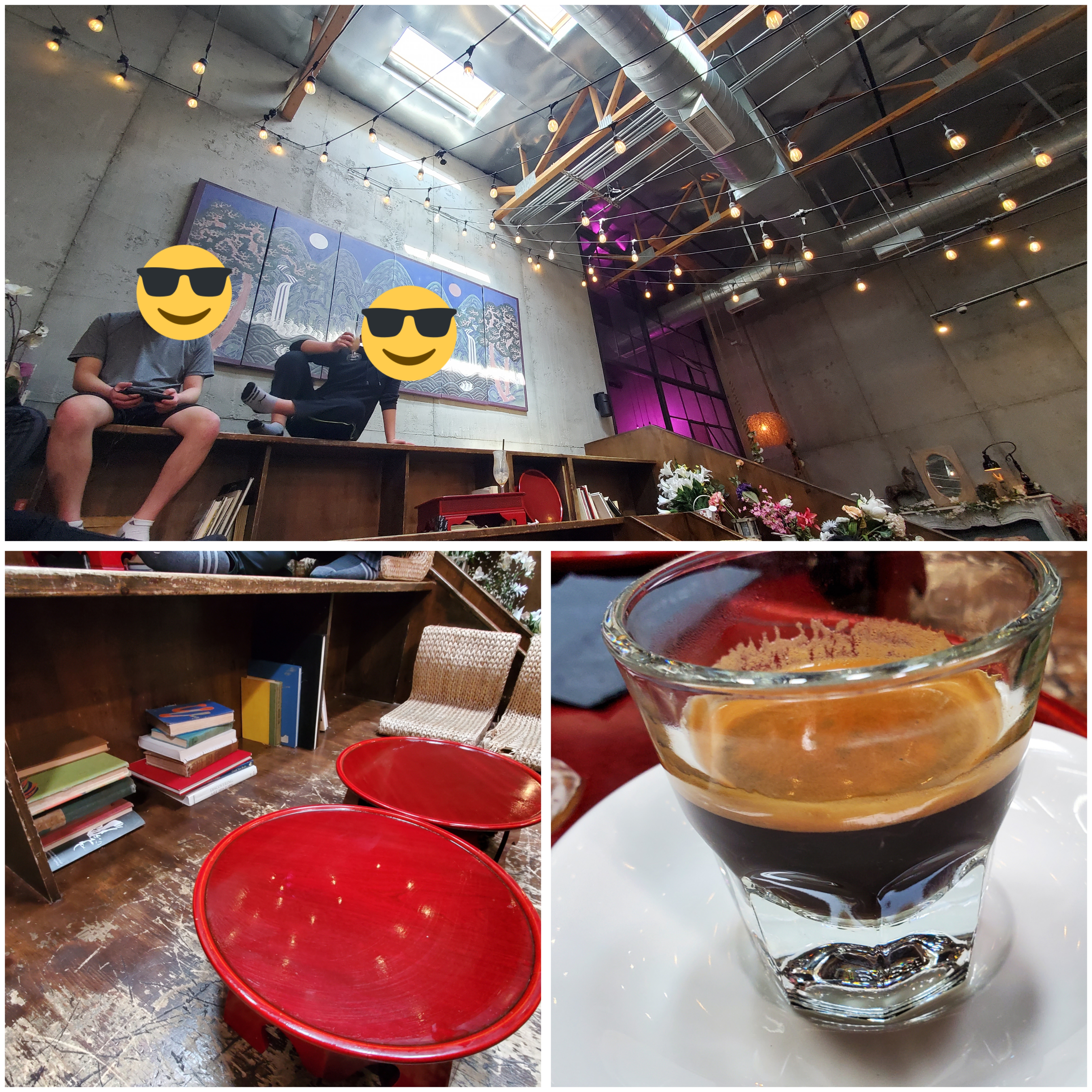 철저한 서양식 Cafe 메뉴에 인테리어는 철저한 구한말 대한제국시절배경으로 깔아준 가게 막상 보기엔 아 뭐 그런가 싶은데 사진을 찍으면 일명 인스타갬성력이 장난 아닌 한국식 커피샵 혹은 까페를 구경갔다.. 갬성한판 맞춰주려 에스프레소 한잔 드링킹…