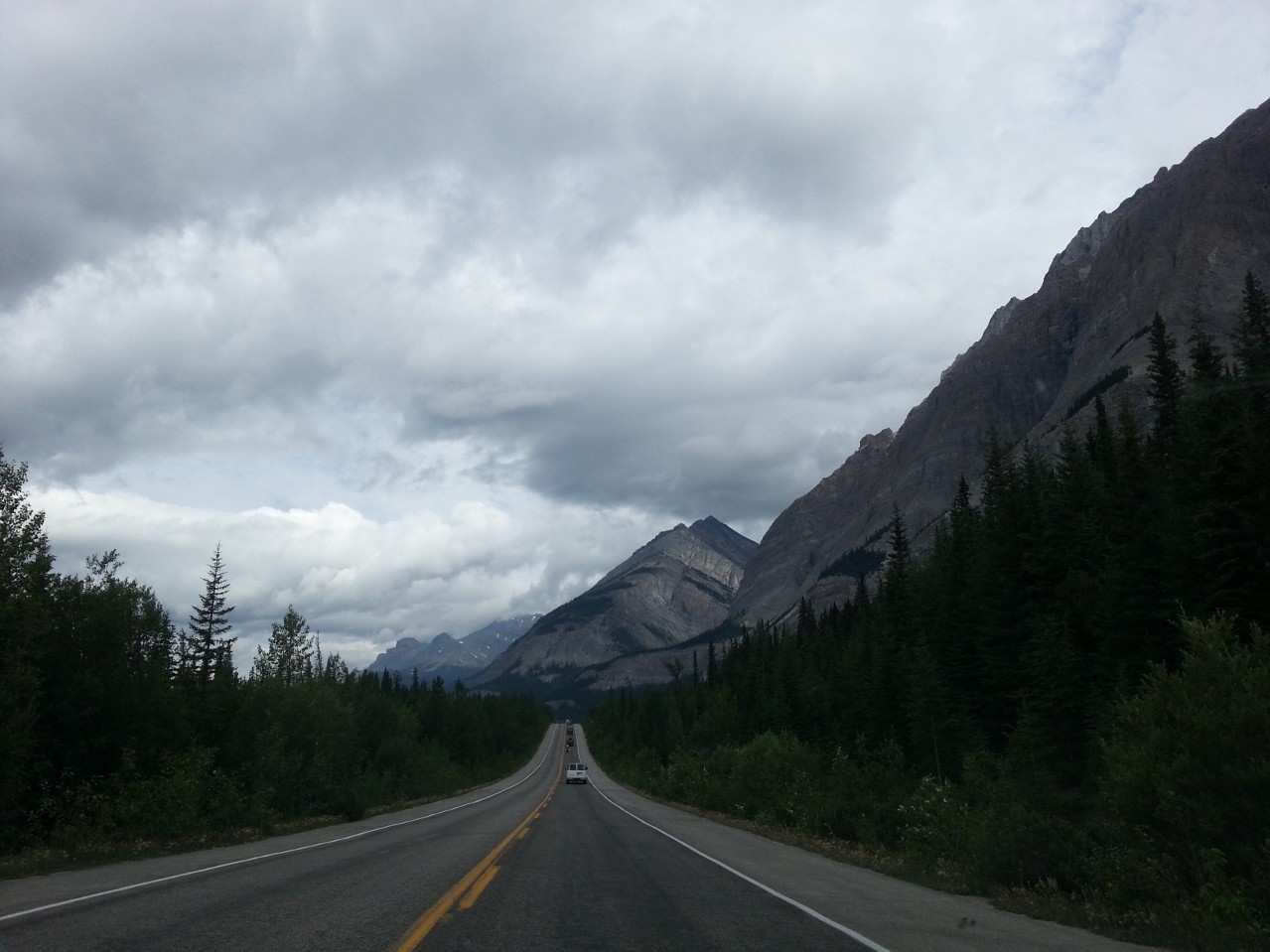 Icefields Parkway: Near Big Bend & Big Hill Road to Columbia Icefields – the river is getting more grey colors 2015.7