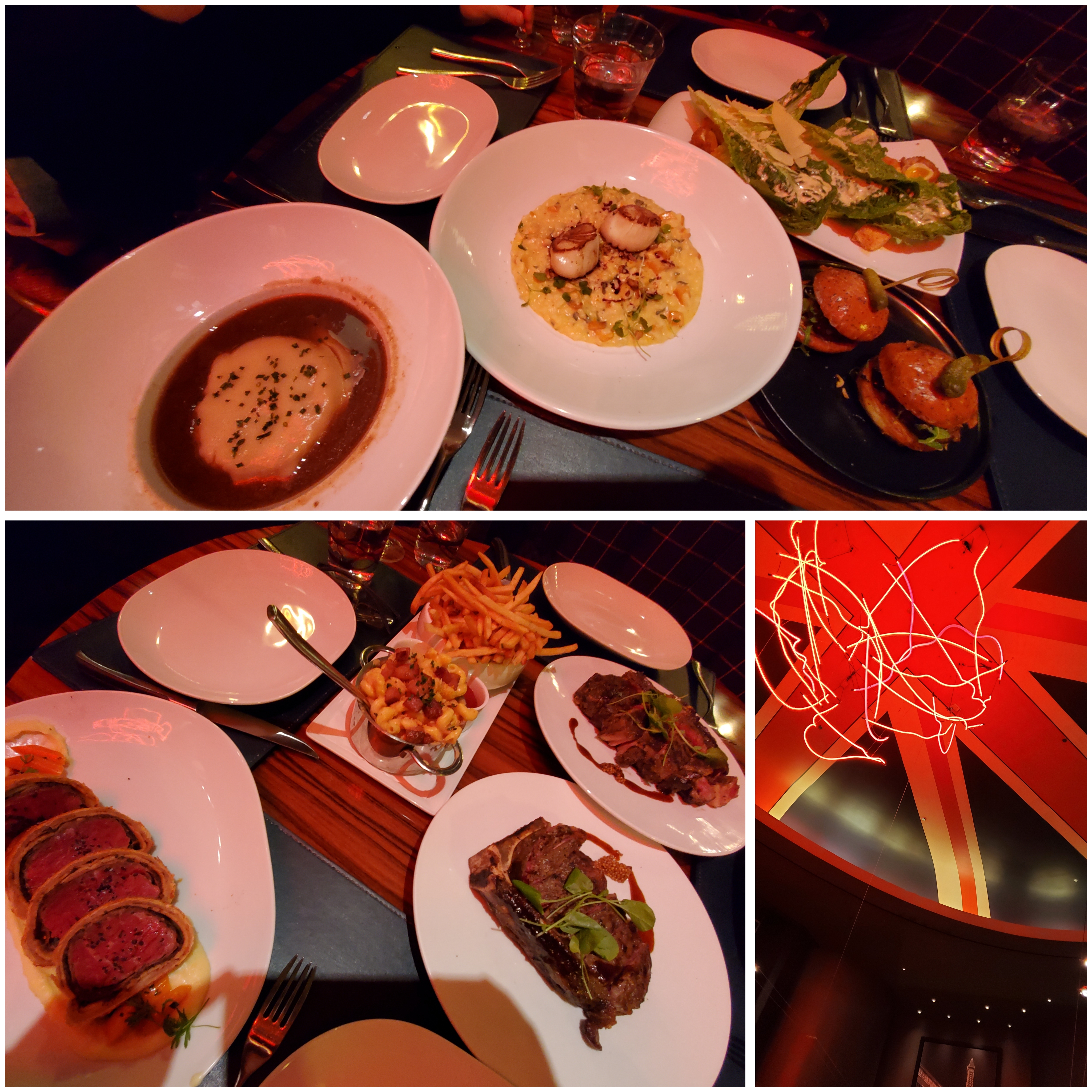 저녁시간 비행기를 $5짜리 스팸무수비를 멕이고 버틴건 그래도 Las Vegas에 왔는데 한번 정도는 fine dining 비스무리한걸 해봐야라는 생각으로 빠흐리 호텔에 있는 영국 욕쟁이 할배 고깃집에 갔다. (나름 가게 앞의 터널이 도버해협터널이라나…ㅋㅋ)