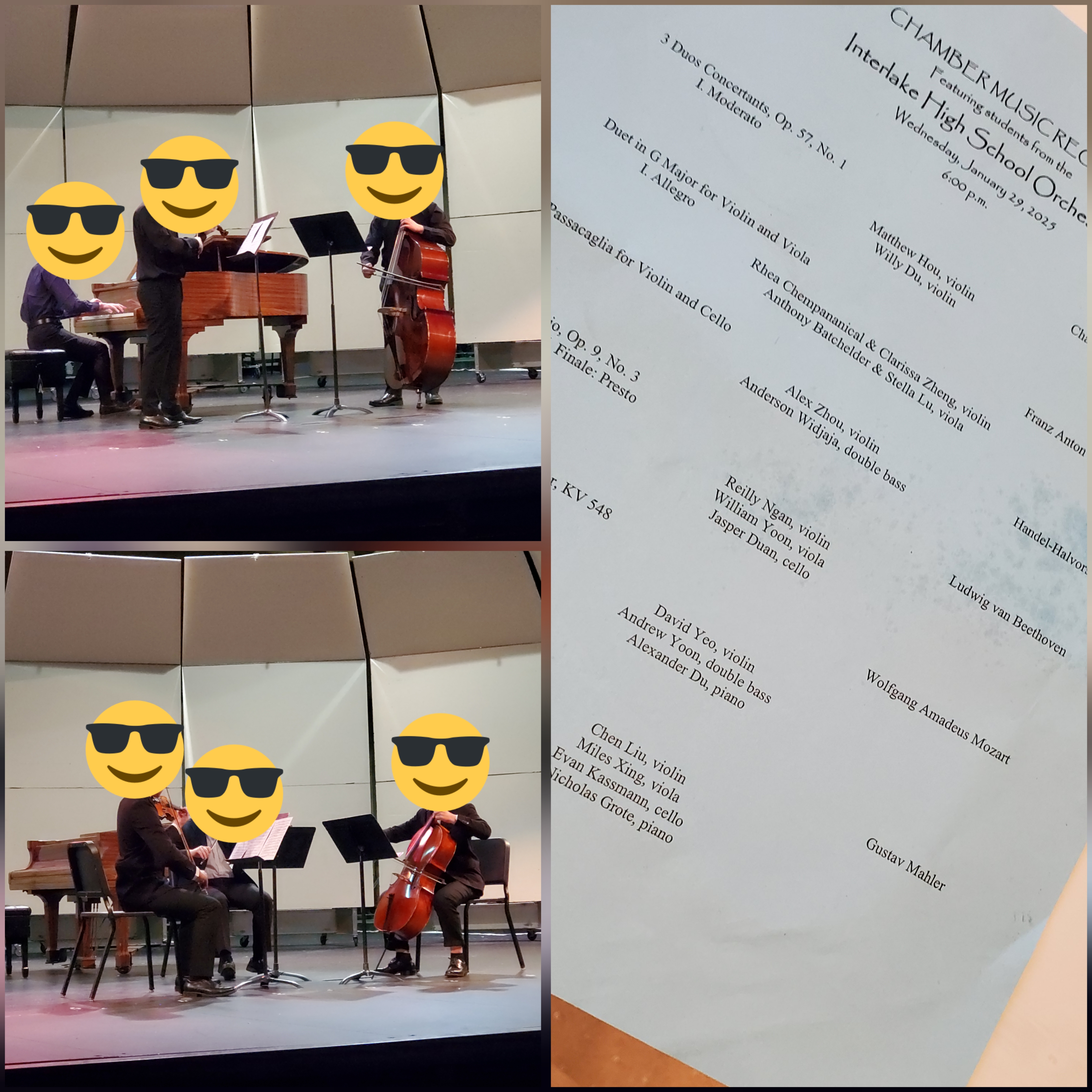 School orchestra event…now one rock with two birds are gone but still good 🙂