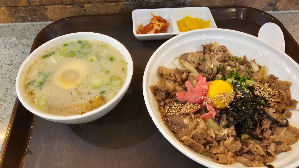 점심을 뭘 먹을까 하다 수지 롯데몰 지하 푸드코트에 있는 규동 일본라면집을 갔다…규동에 라면 콤보하니 15,000원이다..이게 10불에 조금만 더주면 먹는거라니….ㅎㅎㅎ